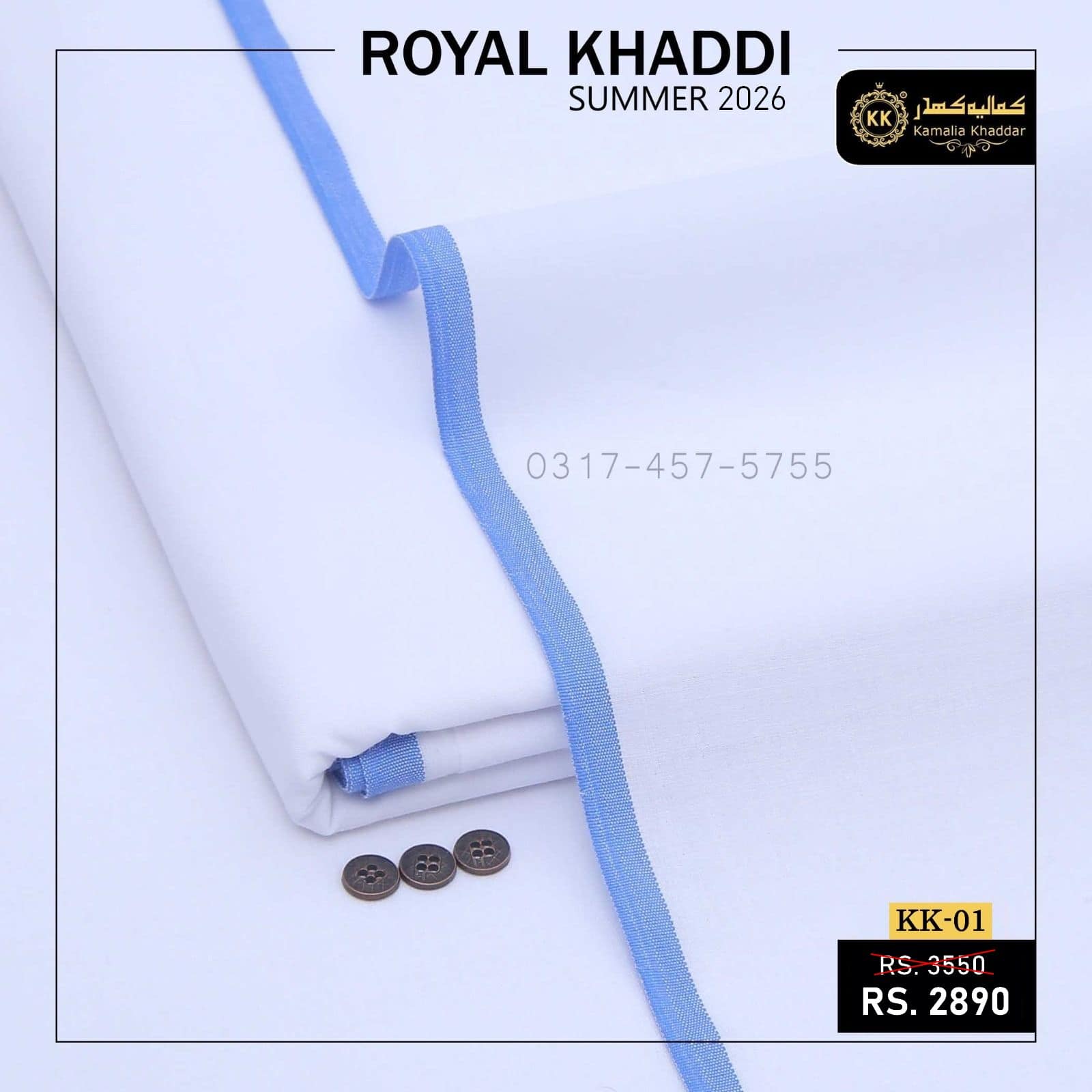 KK-01 Pure White Royal Khaddi Summer Collection